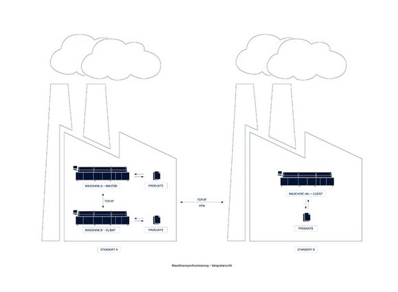 Mithilfe der zentralen Produktverwaltung innerhalb der ViCON-Anlagensoftware werden die Produktparameter der einzelnen Baugruppen miteinander verglichen und durch die manuelle oder automatische Synchronisierung angepasst oder ergänzt. Die Synchronisation der Parameter erfolgt per Netzwerkübertragung über ein TCP/IP-Protokoll. Eine transparente Netzwerkverbindung, z.B. über ein VPN, ermöglicht eine standortübergreifende Synchronisation, was einen wichtigen Baustein auf dem Weg zu einer zukunftsfähigen Smart Factory darstellt.