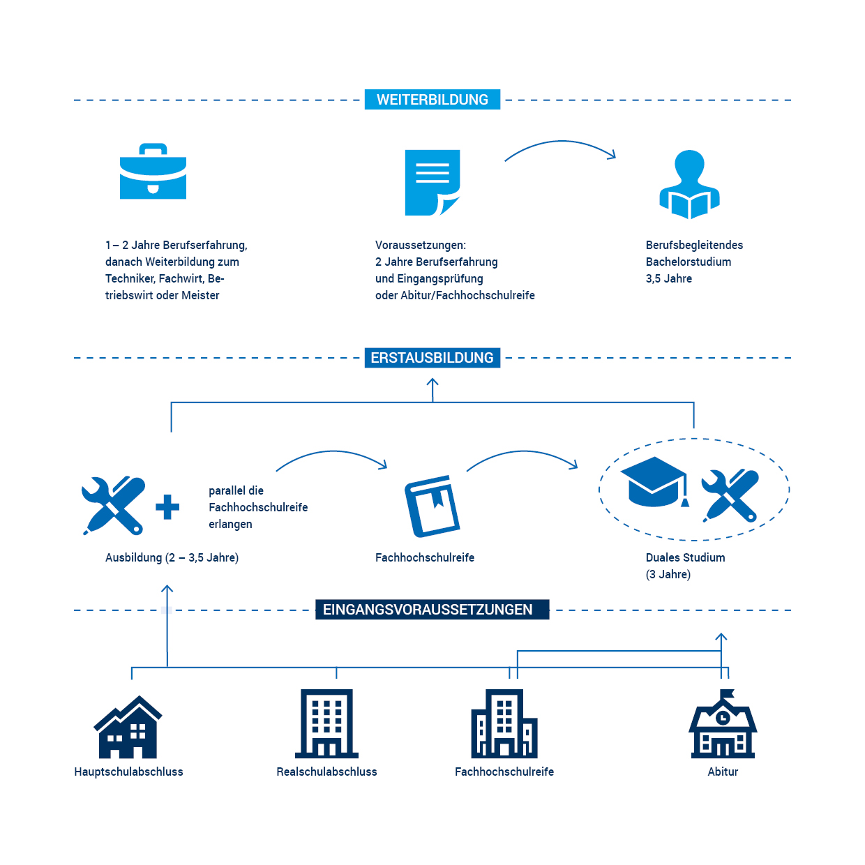 - Sammle für 1-2 Jahre Berufserfahrung und absolviere anschließend eine Weiterbildung zum Techniker, Fachwirt, Betriebswirt oder Meister