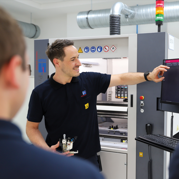 Our group training sessions offer hands-on knowledge transfer focused on each specific system – directly from the experienced trainers of the Rehm Academy. In small groups, we provide in-depth expertise, practical tips, and targeted instructions to ensure safe and efficient system operation. This way, you and your team are perfectly prepared to operate and maintain your equipment at the highest level.